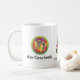 Esta caneca colorida descreve três sazonais, mas essencialmente temporal, imagens: um presente, São Nicolau, e um boneco de neve. Cada um é etiquetado no alemão. Esta caneca poderia fazer um grande presente de época natalícia para um professor que alemão você conhece.