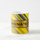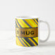As características deste design da caneca um teste padrão das listras coloriram várias máscaras das cores como o amarelo e as cinzas. Igualmente caracteriza um nome feito sob encomenda dentro de uma área colorida ouro do falso.