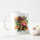 A caneca de café é mostrada com uma adorável pinecona de outono e impressão de arte floral. O Outono É Um Texto Bonito. Personalize este item ou comprar como está. Imagem licenciada