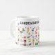 Mug projetado para jardinagem, com ferramentas, plantas, flores e coisas relacionadas a jardinagem.