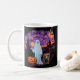 Um fantasma assustador flutuando em frente a uma mansão assombrada com abóboras brilhantes e um céu escuro assustador. Esta design de Halloween arrepiante é perfeita para fãs de horror, noites de truque ou de tratamento e amantes de casas assombradas