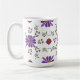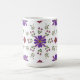 Coloque seu pinto favorito em estilo com esta vibrante caneca floral. Perfeito para iluminar sua rotina matinal! Este padrão floral de arte folclórica envolve a caneca e apresenta flores roxas e vermelhas com sotaques dourados e folhas verdes frescas sobre o fundo branco da caneca.