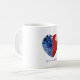 A Exam Mug apresenta um design único em forma de coração feito de meio safira azul, representando confiança e confiança, simbolizando paixão. A maior proporção de safiras em duas cores acrescenta um significado especial a esta design à sua vida diária.