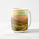 Esta design de caneca do nascer do sol captura a beleza serena da primeira luz do amanhecer. A ilustração apresenta um gradiente suave de matizes quentes — de amarelos ouros a roxas e pintas ricas — que se misturam para mimetizar o céu no amanhecer. Uma silhueta de um sol ascensão espia logo acima do horizonte, lançando raios suaves que se esticam sobre a superfície lisa e cerâmica. A imagem pacífica e tranquila suscita sentimentos de esperança, renovação e a promessa de um novo começo com cada novo dia. Perfeito para tomar café ou chá matinal, esta caneca traz um momento de calma e inspiração para a sua rotina diária.
