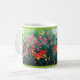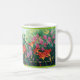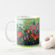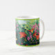 Uma caneca clássica com os hemerocallis alaranjados vermelhos bonitos, as flores do fúcsia e os vagens vining da semente de papoila baseados em uma pintura a óleo por Joana C. Thomson de um jardim no Shenandoah Valley de Virgínia
