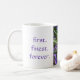 Primeiramente. Mais fino. Para sempre. Nós não o sabemos! Aprecie um copo de sua bebida quente favorita no estilo sisterly. Grande presente para mais velho de graduação, pouco sis/sis grande, conselheiros e mais.