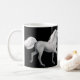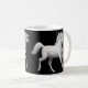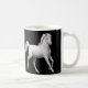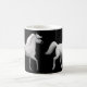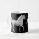 Dois designs dos cavalos brancos pelo artista eqüino Carolyn McFann do estúdio de ronrom de dois gatos em uma caneca de café da qualidade para amantes do cavalo.