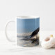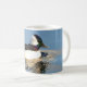 Um pato do bufflehead do homem nada na água azul através desta caneca cerâmica de 11 onças. Presente perfeito para birdwatchers, amantes dos animais selvagens, ou caçadores.