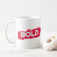 Comece o seu dia com confiança usando esta Caneca Clássica com Tipografia NEGRITO. Com letras brancas impressionantes em um fundo vibrante de pinceladas vermelhas, esta caneca é perfeita para amantes de café que gostam de uma dose diária de motivação. Durável, elegante e projetada para se destacar, é um excelente presente para estudantes, empreendedores, criadores e qualquer pessoa pronta para viver de forma ousada.