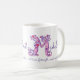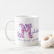 Letra tirada mão decorada M. Personalizamento com seu próprio começo conhecido com a caneca do significado de M e de nome. O capital bonito M do coração e da flor doodled o design tipográfico que caracteriza corações e flores e a torre de Madeline A das palavras de força, aquático e bonito no rosa e no roxo. Arte e design originais do © por Sarah Trett. www.sarahtrett.com para www.mylittleeden.com no zazzle