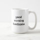 Caneca moderna e minimalista. Esta caneca fá-lo-á começa o dia com um sorriso em sua cara. Excelente para um marido, uma noiva, um namorado ou um noivo. Caracteriza a frase "bom dia considerável" em uma pia batismal simples. Design masculino. Excelente a ser emparelhado com do "a caneca bonita bom dia".