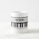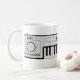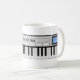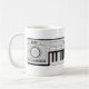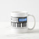 Uma caneca customizável com um design do teclado do sintetizador. O sintetizador tem um teclado de piano, botões do controle e botões. Uma indicação digital azul tem uma área de texto customizável.