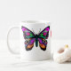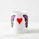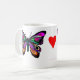 Caneca colorida com a borboleta em lados e em coração. As borboletas simbolizam a liberdade, mudança, natureza.