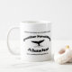 A caneca de café com o logotipo de uma empresas do viagem da observação e da aventura da baleia de Alaska de primeiros imprimiu nela.
