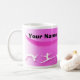 O design completo do envoltório da ginástica nesta caneca está nos roxos e nos rosa. Adicione seu nome facilmente a esta caneca ou adicione seus criança/neto e dê-o como um presente original!