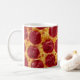 Caneca com um impressão devista da pizza de pepperoni.