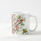 Celebre a beleza da primavera com esta caneca alegre que apresenta duas ilustrações originais em estilo aquarela de Romi. Um lado captura uma cena aconchegante de um dia chuvoso com uma figura em um casaco brilhante caminhando sob um guarda-chuva, enquanto o outro mostra um passarinho doce empoleirado entre folhas verdes frescas.