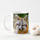 ESTA É UMA DE MINHAS FOTOGRAFIAS ORIGINAIS DA RAPOSA E OLHA GRANDE NESTA CANECA BRILHANTE DO BRANCO ZAZZLE.