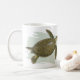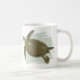 As características de design da caneca uma imagem de uma tartaruga verde adulta (um tipo de tartaruga de mar) seleccionada das tartarugas vivas pelo alvorecer Witherington do artista dos animais selvagens. Os encontros pessoais do alvorecer com tartarugas de mar emprestaram o detalhe realístico a seu art.
