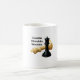 Uma caneca de jogador de xadrez, rainha escura, rei claro, jogo sobre