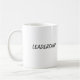 A caneca lê a liderança em um lado e "quando sua equipe está ganhando, esteja pronta para ser resistente, porque ganhar pode o fazer macio. Por outro lado, quando sua equipe for perdedora, vara por eles. Crença Keep. -- BO Schembechler" no outro.