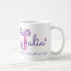 Letra tirada mão decorada com seu próprio começo conhecido com J e a caneca conhecida do significado. O capital bonito J do coração e da flor doodled o design tipográfico que caracterizam corações e flores e as palavras Julia jovem, romântica com o dom criativo no rosa e no roxo. Arte e design originais do © por Sarah Trett. www.sarahtrett.com para www.mylittleeden.com no zazzle