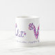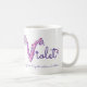 Letra tirada mão decorada com seu próprio começo conhecido com a caneca do significado de V e de nome. O capital bonito V do coração e da flor doodled o design tipográfico que caracteriza corações e flores e a flor do roxo da violeta A das palavras. Requintado, criativo e ambicioso no rosa e no roxo. Arte e design originais do © por Sarah Trett. www.sarahtrett.com para www.mylittleeden.com no zazzle