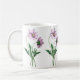 Aguarela roxa da antiguidade do cosmos em uma caneca cerâmica clássica.