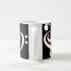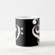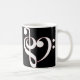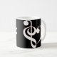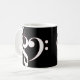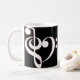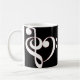A caneca do coração do Clef caracteriza um coração formado por um clef de triplo e por um clef baixo no branco esboçado no vermelho.