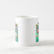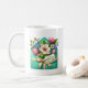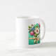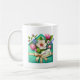 Esta clássica caneca de café branca é mostrada com uma encantadora estampa floral do Dia das Mães.