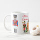 Tenha um copo quente da doçura com esta caneca bonito do Nutcracker do país das maravilhas do inverno. Deixe a época natalícia ser animador e brilhante e pouco toque da mágica que enche sempre o ar esta época do ano. Esta caneca quente bonito da bebida caracteriza o nutcracker, casa de pão-de-espécie. Personalize-a com seu nome ou cite-a.