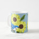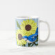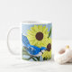Ilustração de cor lisa de Jay azul entre girassóis amarelos