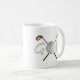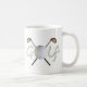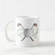 A caneca branca do golfe com criss cruzou os clubes de golfe e a palavra "golfe" com uma bola de golfe no centro no lugar do "O". O texto/e ou as imagens podem ser adicionados e a cor da caneca pode ser personalizada.