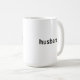 Caneca moderna e minimalista. Excelente para um marido ou um noivo. Caracteriza o marido da palavra em uma pia batismal simples. Design masculino. Excelente a ser emparelhado com a caneca da "esposa".