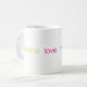 Caneca bonito, simples, à moda que indica a "paz, amor, montessori" em três cores elogiosas. Presente perfeito para professores, funcionarios da escola ou mães!