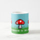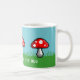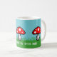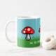 Um prado da arte do pixel com grama verde, o céu azul, e agaric de mosca vermelho cresce rapidamente. No teste branco é o cogumelo das palavras "assim nesta caneca". A chalaça fungosa pode ser mudada para seu frase ou nome feito sob encomenda.