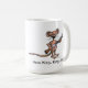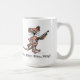 Esta é uma caneca com uma imagem dos desenhos animados de um rato que guardara uma espingarda. O subtítulo lê, "aqui gatinho, gatinho, gatinho!"