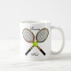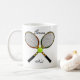 As raquetes de tênis compo esta caneca do divertimento. Customizável assim você pode adicionar seu próprio texto e mudar a cor do fundo. Faz um grande presente!