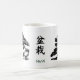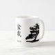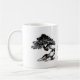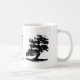 Dois bonsais diferentes em preto e branco, um em cada lado da caneca separaram pelos caráteres de kanji para "bonsais".