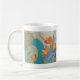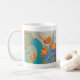 Um design original lunático brilhante de uma de minhas pinturas. Dois pássaros estão olhando na lua, cercada por tulipas alaranjadas.