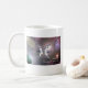 Este design é o símbolo para os peixes do sinal do zodíaco em um fundo da galáxia.