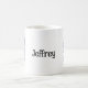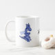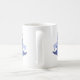 Boneco de dragão azul em cada lado da caneca. Rosto do dragão voltado para o centro onde o Nome é personalizado. Dragão é criado a partir de fio em várias tonalidades de azul e branco. Boneco tem asas Brancas.