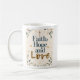 Uma arte atemporal para paredes cristãs apresentando as poderosas palavras “Fé, Esperança & Amor”. Um lembrete gentil das promessas de Deus, perfeito para decoração de casa, cantos de oração ou como um presente significativo para casais recém-casados.