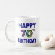 De Café Caneca feliz do aniversário do 70 na pia batismal