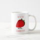 Caneca com um personagem de desenho animado de sorriso da morango. A ilustração inclui as palavras "que você é a morango melhor" e aquelas palavras podem ser personalizadas.
