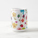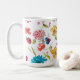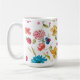 Uma pintura original em aquarela impressa em uma caneca, flores e frutas silvestres caprichosas e alegres espalhadas por este design. Pintura de Kristina Anderson