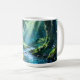 Linda caneca da floresta encantada com uma cena sonhadora da floresta com água brilhante, árvores musgosas, luz mágica e uma atmosfera de fantasia pacífica. Perfeita para café, chá, chocolate quente e manhãs aconchegantes. Um presente adorável para amantes da natureza, fãs de fantasia e qualquer um que goste de designs mágicos calmos.