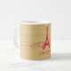 Caneca Flourish francesa Elegante e chic, com fundo de aparência falsa em madeira e design de Torre Eiffel em magenta, enfeitiçada com cascatas de na moda. Esta design de moda e moda é fácil de personalizar com o texto personalizado de sua escolha. Clique em "Personalizar" para encontrar mais opções de personalização.