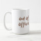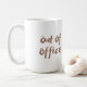 Escapar com a "Esta é a minha caneca fora do escritório". Apresentando um design lúdico e um lembrete atrevido para checar mentalmente, esta caneca de cerâmica é perfeita para aqueles dias quando você sonha com praias arenosas ou só precisa de uma pausa. Quer você esteja de férias ou apenas deseje que estivesse, esta caneca traz uma pequena vibração de férias para seu ritual diário de café. Um presente divertido e espirituoso para colegas de trabalho, amigos, ou qualquer um que esteja contando até sua próxima fuga.