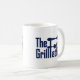 Esta caneca de cerâmica é mostrada em uma estampa GRILL PAI.